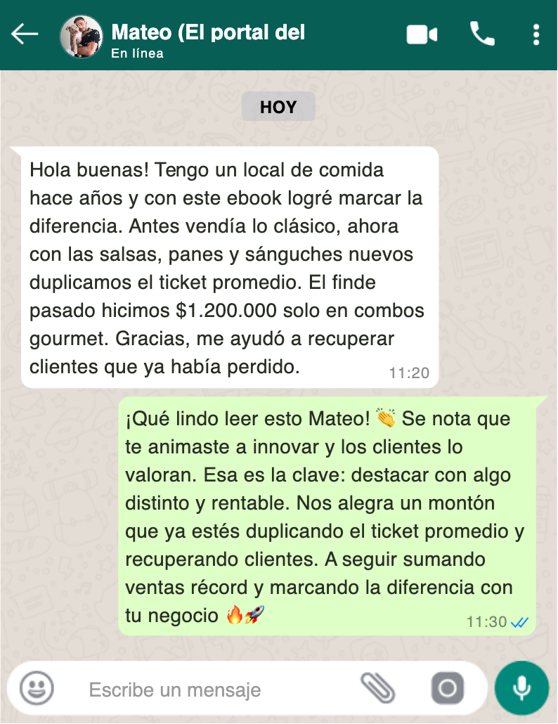 "Mi local estaba mal. Renové con estas recetas y subí 40% las ventas en un mes. Ahora va bien."