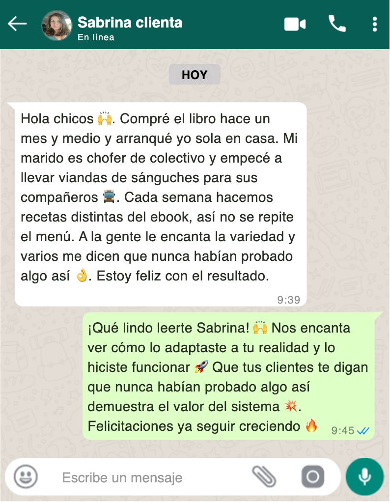 "Súper recomendable! 👏 Soy mamá y cocino mientras los nenes duermen. Ya tengo 12 clientas y creciendo 🙌💪"
